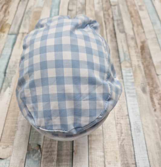 Personalised Baby Boys Blue And White Checked Flat Cap