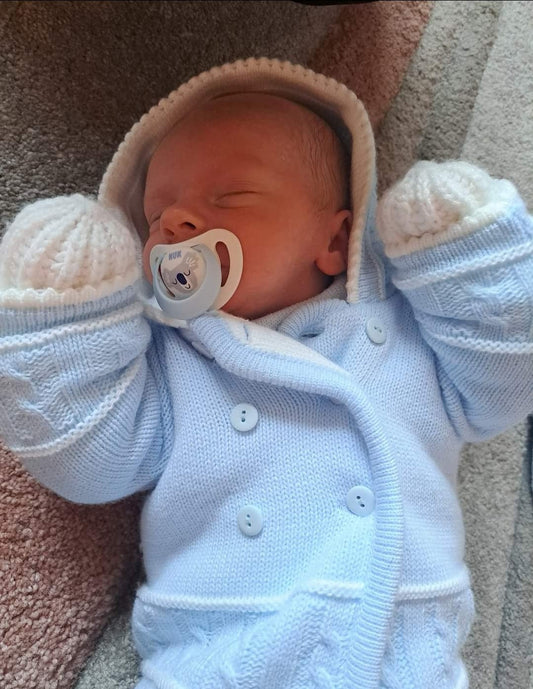 Baby Boys Blue Knitted Hooded Pram Coat