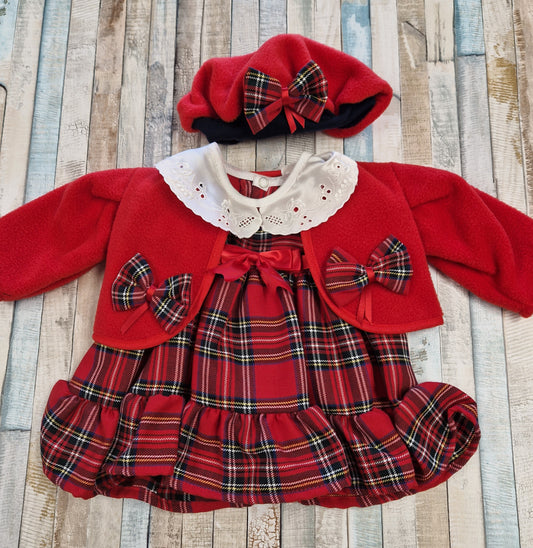 Baby Girls Red Tartan Dress With Matching Jacket & Hat