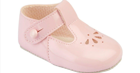 Baby Girls Red Patent Soft Bottom Diamante Pram Shoe