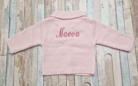Baby Girls Dusky Pink And Grey Knitted Dress With Dusky Pink Cardigan