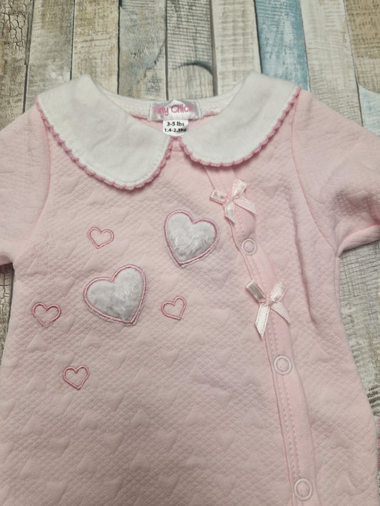 Premature Baby Girls Pink Faux Fur And Embroidered Hearts Design Babygro