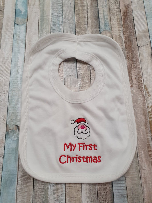 Unisex Baby 1st Christmas White Bib With Red Printed Rabbit