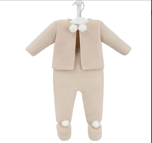 Unisex Baby Beige Knitted 2 Piece Cable Knitted Set
