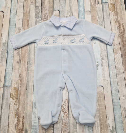 Nana's Special Buy Baby Boys Blue Velour Smocked Rocking Horse Babygro