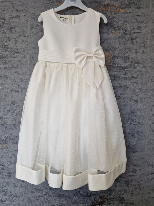 Girls Cream Visara Sleeveless Dress With Satin Bow