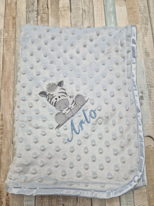 Baby Boys Personalised Blue Ziggy Zebra Dimple Wrap