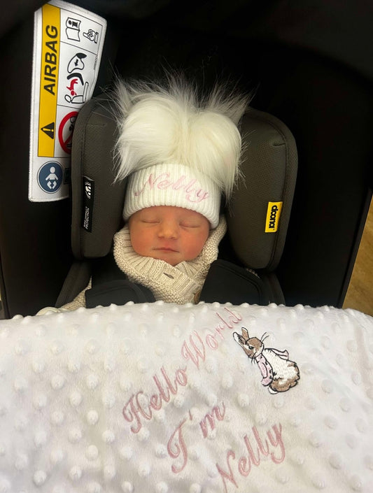 Personalised Hello World Pink Dimple Blanket/Wrap With Embroidered Pink Rabbit Design