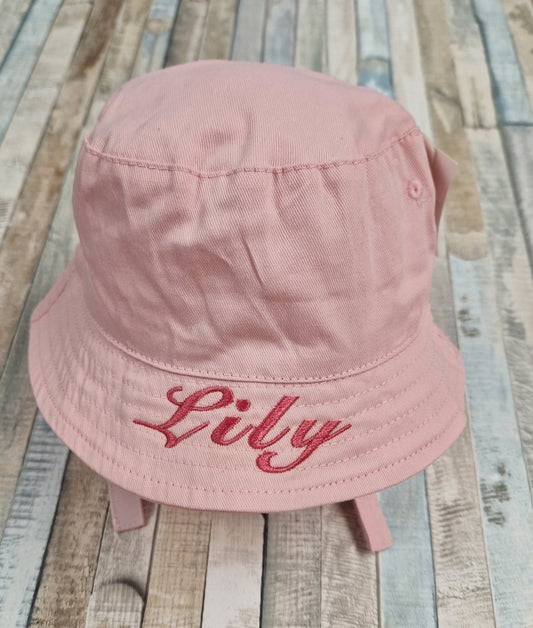 Personalised Baby Girls Pink Bucket Hat With Chin Strap