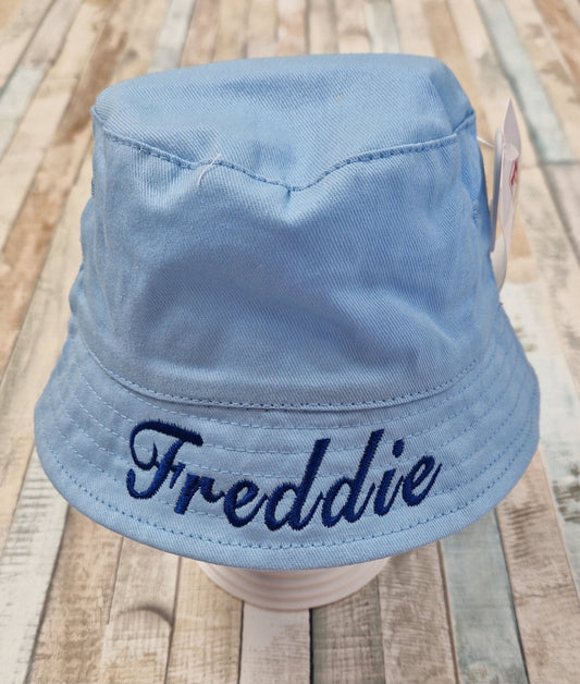 Personalised Baby Boys Blue Bucket Hat With Chin Strap