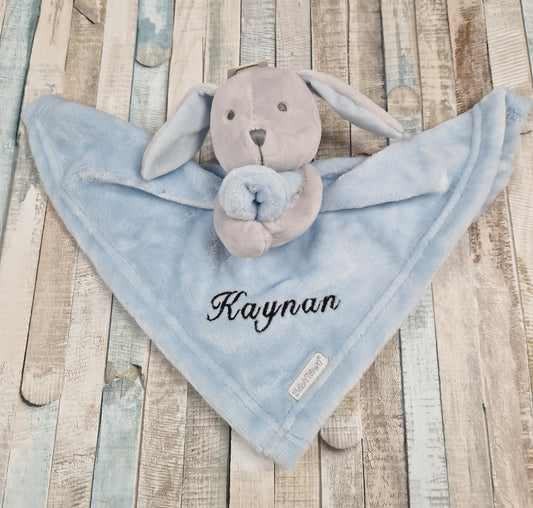 Personalised Blue Dimple Baby Wrap /Blanket With Blue Rabbit