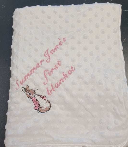 Personalised Baby Girls My First White Dimple Wrap/ Blanket With Pink Rabbit