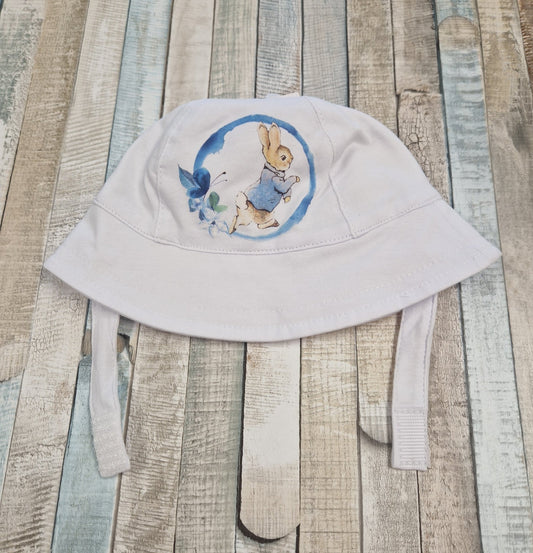 Baby Boys White Sunhat With Printed Blue Rabbit Design