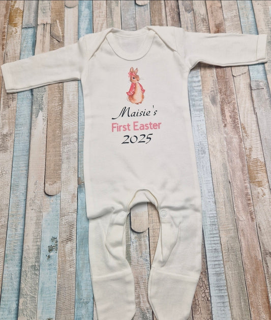 Baby Girls Personalised My First Easter Pink Rabbit Bib