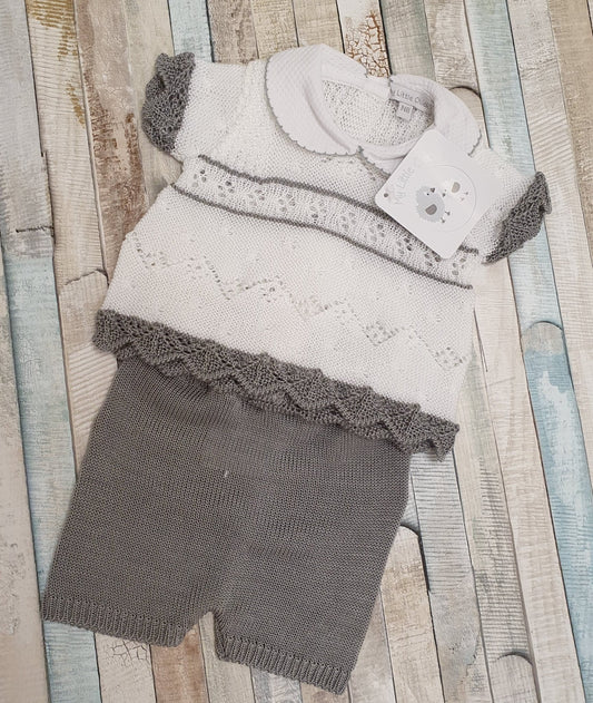 Unisex Baby Grey Rabbit Knitted Dungaree