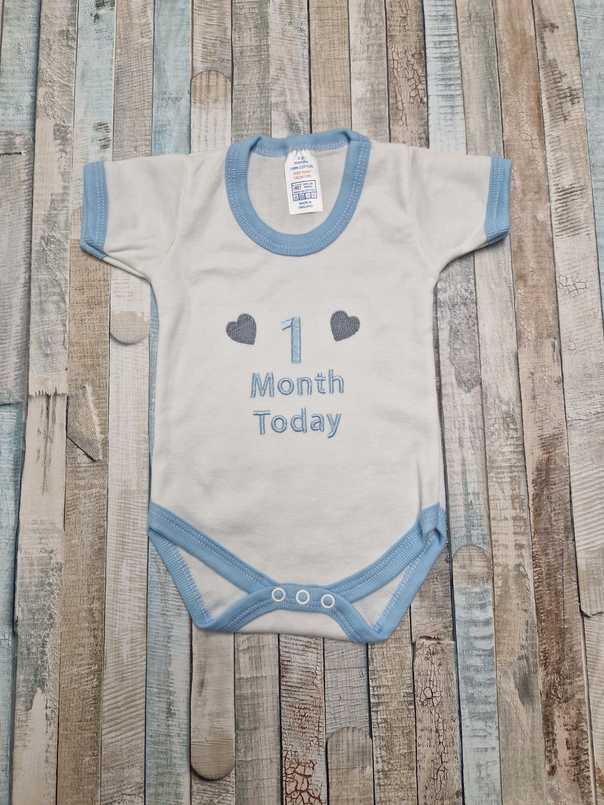 Introducing our adorable Baby Boys 1 Month Today Blue and White Vest. Made with soft,