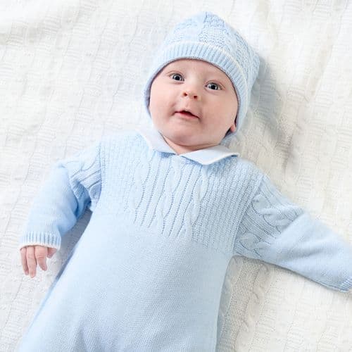 Baby Boys Blue Knitted All in One With Bobble Hat
