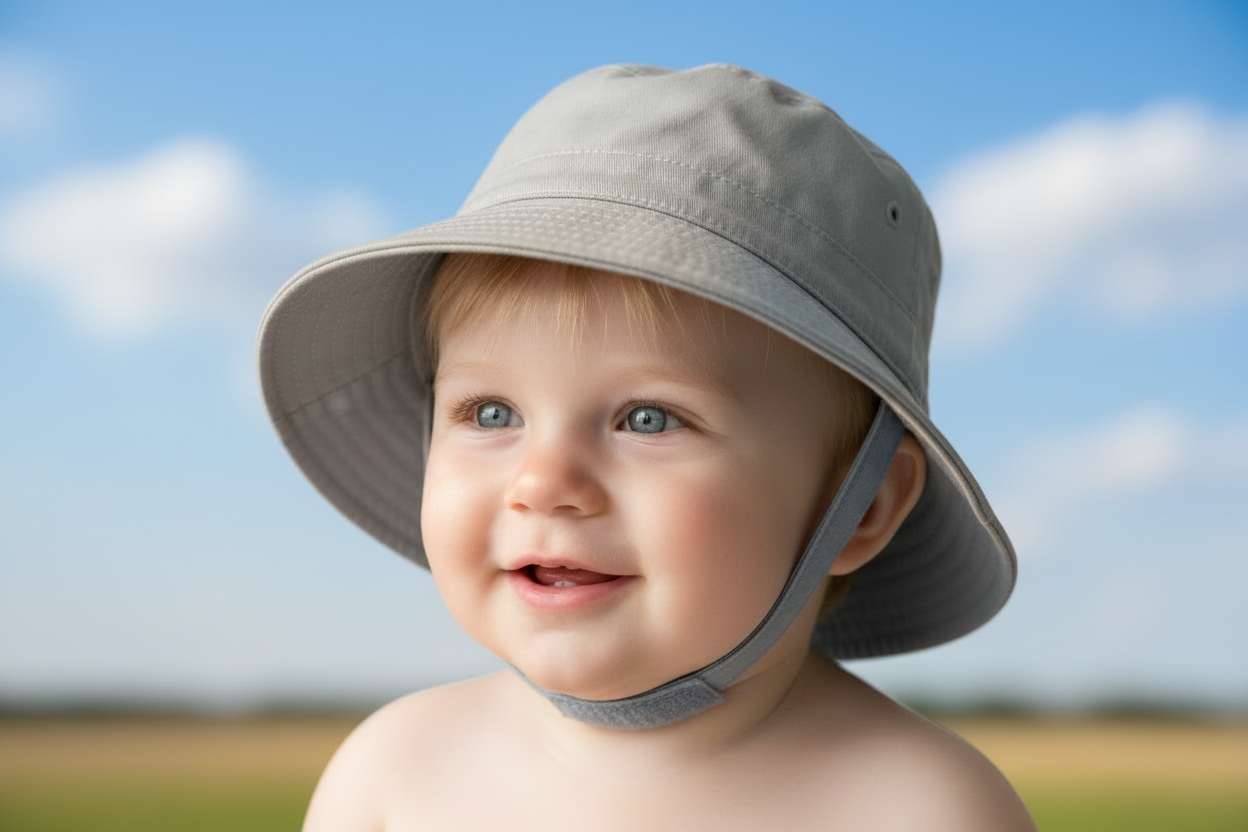 Baby Boys Plain Slate Grey Bucket Hat is a must-have for summer. Its chin strap ensures a