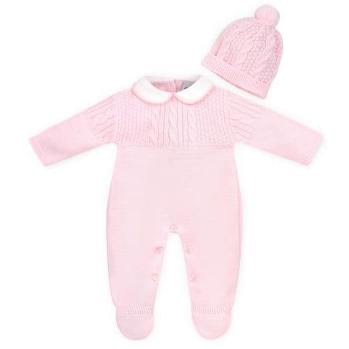 Baby Girls Pink Knitted All in One With Bobble Hat