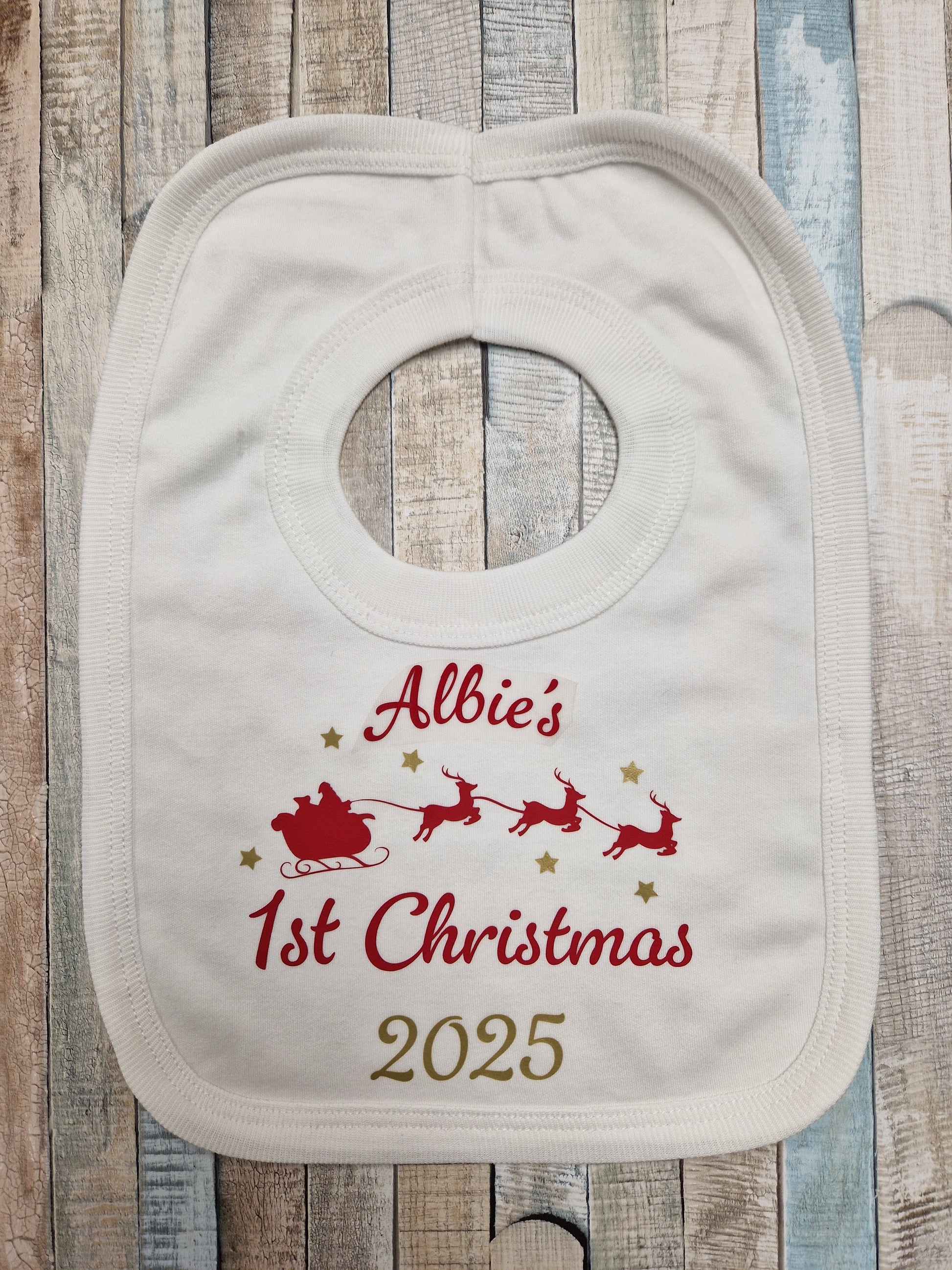 Baby's Personalised 1st Christmas Santa Sleigh Printed Bib
