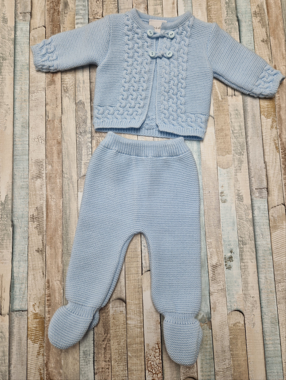 This baby boys' blue fancy knit two-piece set combines comfort with style, crafted to keep your little one cozy and looking sharp. The soft knit fabric ensures gentle warmth, while the elegant design adds a refined touch perfect for special occasions or everyday wear. Designed for easy layering and dressing, this set supports both practicality and sophistication in your baby's wardrobe.