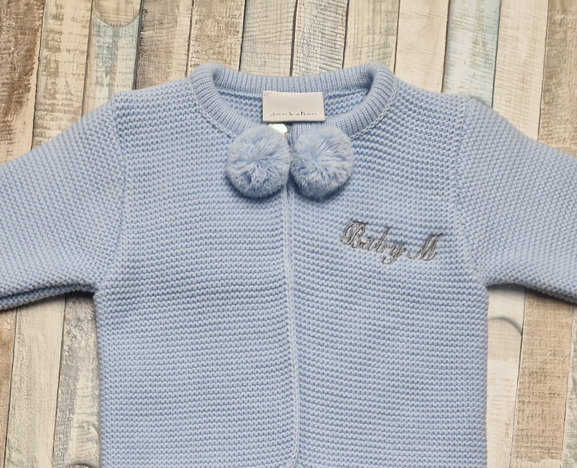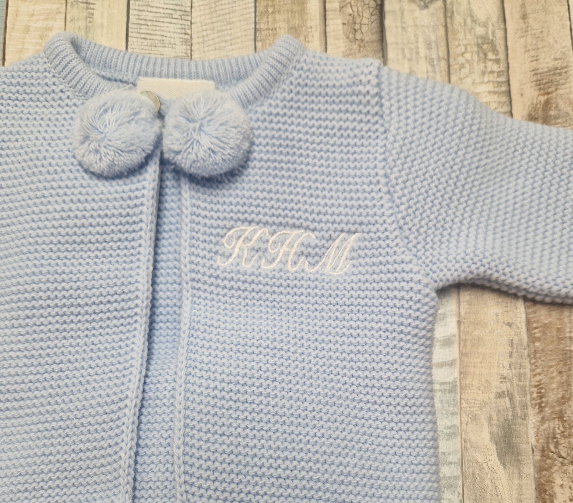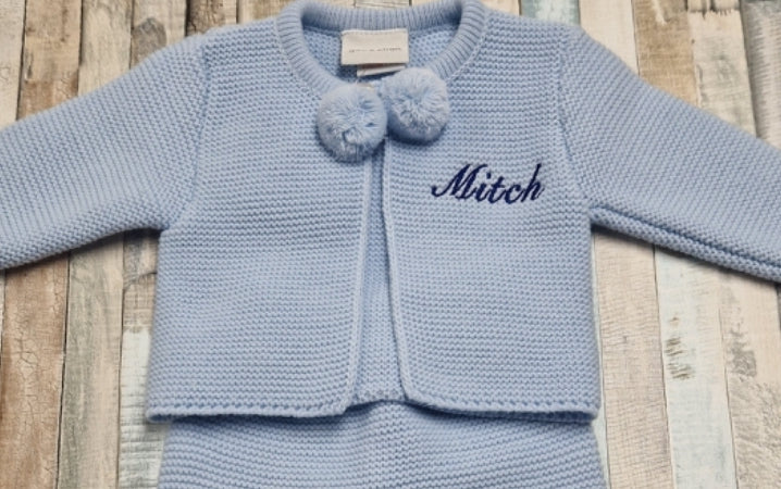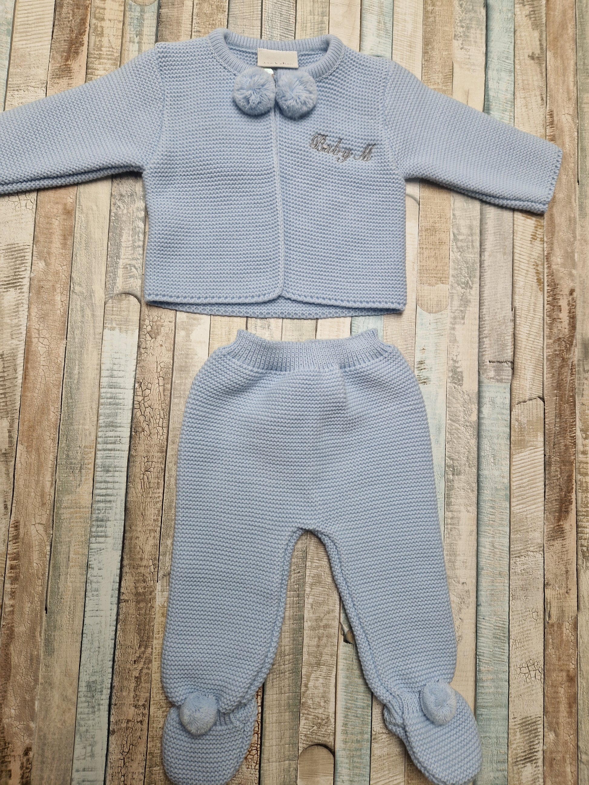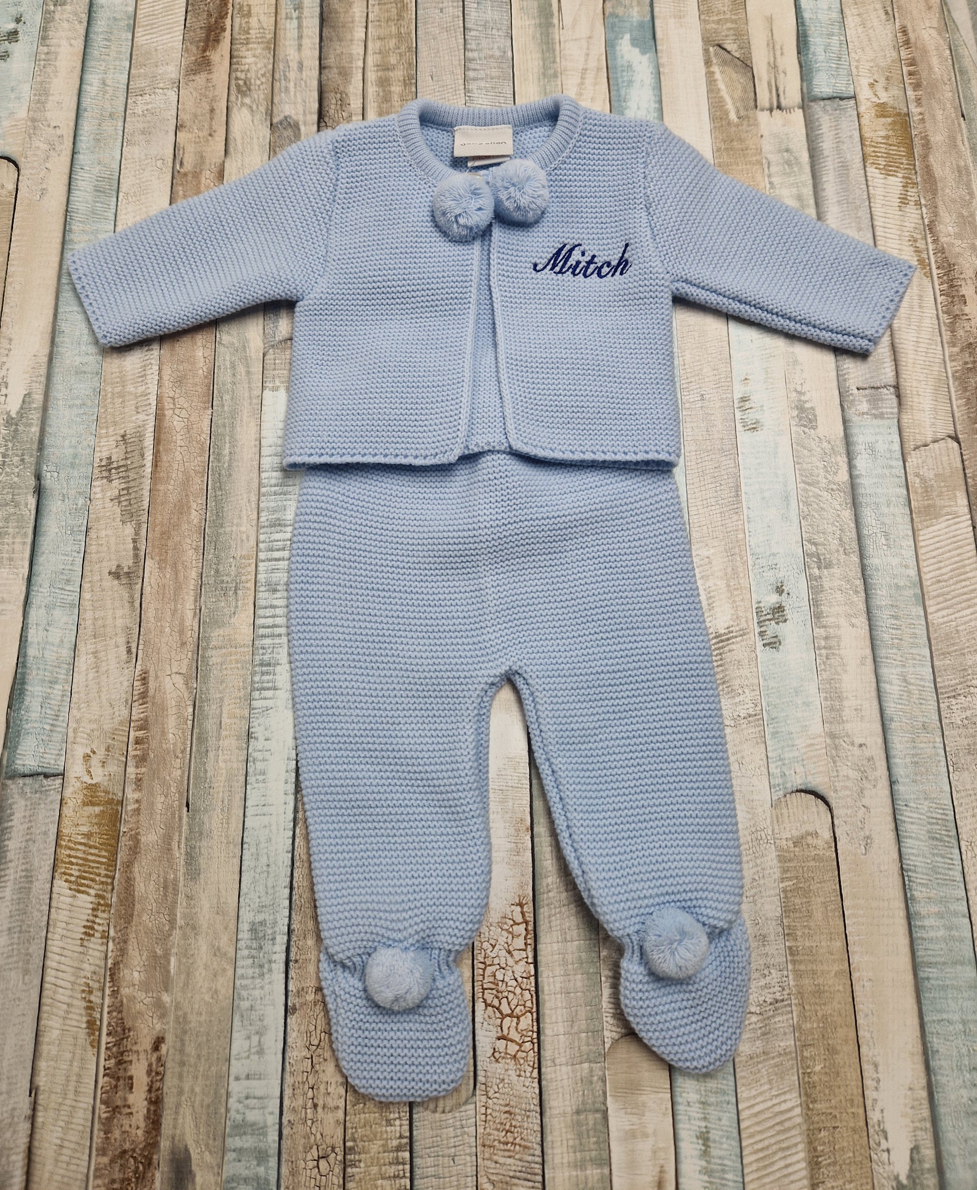 Personalised Baby Boys 2 Piece Blue Pom Pom Set