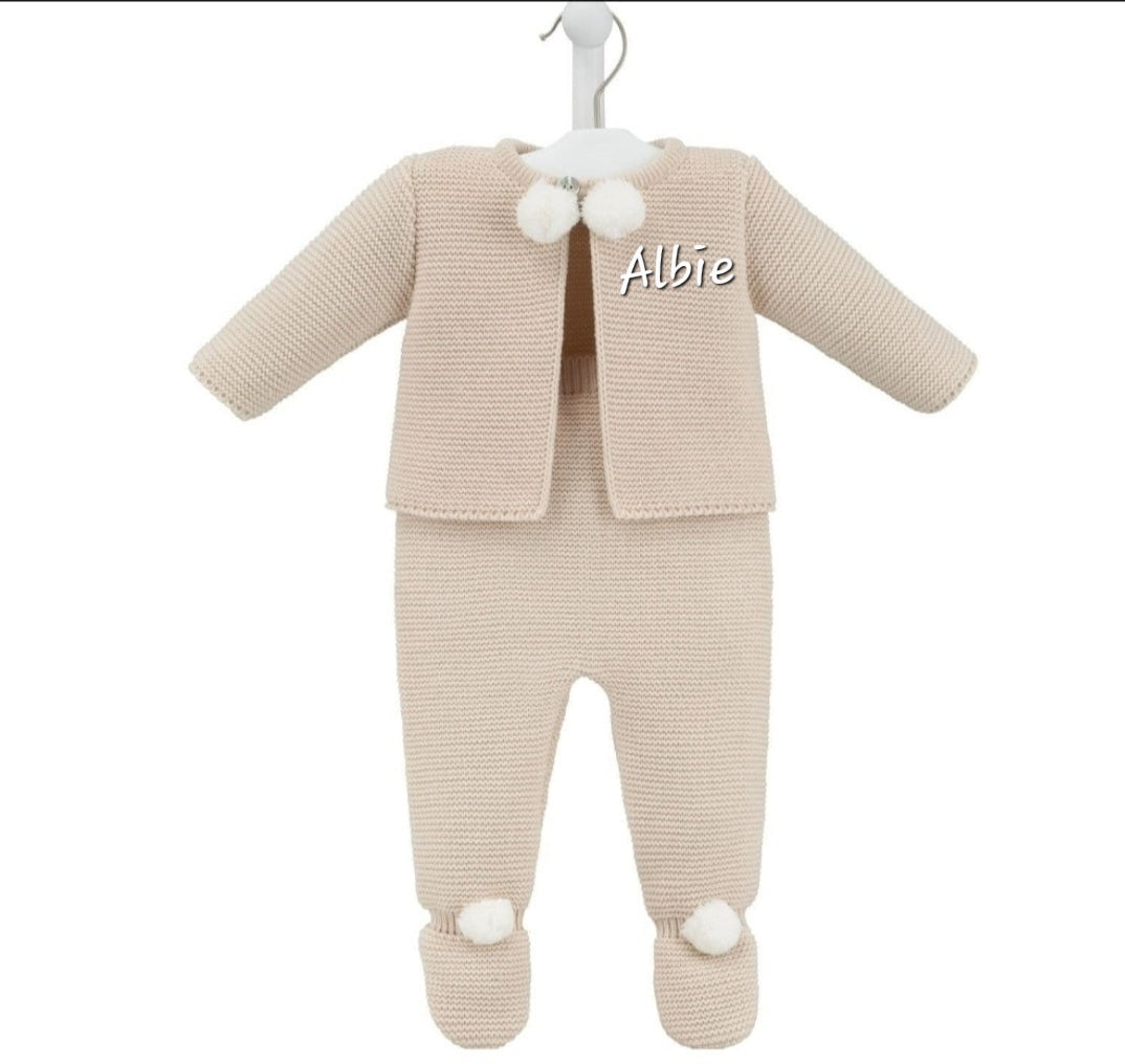 This Personalised Unisex Baby Beige Dandelion Pom Pom Set combines delicate design with practical comfort. Crafted in a soft beige hue, it features charming dandelion-inspired pom poms that add a playful yet subtle touch. Suitable for both baby girls and boys, the set is thoughtfully personalised for a unique, cherished gift. The gentle materials ensure comfort for sensitive baby skin while providing warmth and style for everyday wear. Ideal for newborns and young infants, this set balances functional wearability with an expert eye for timeless, gender-neutral aesthetics.