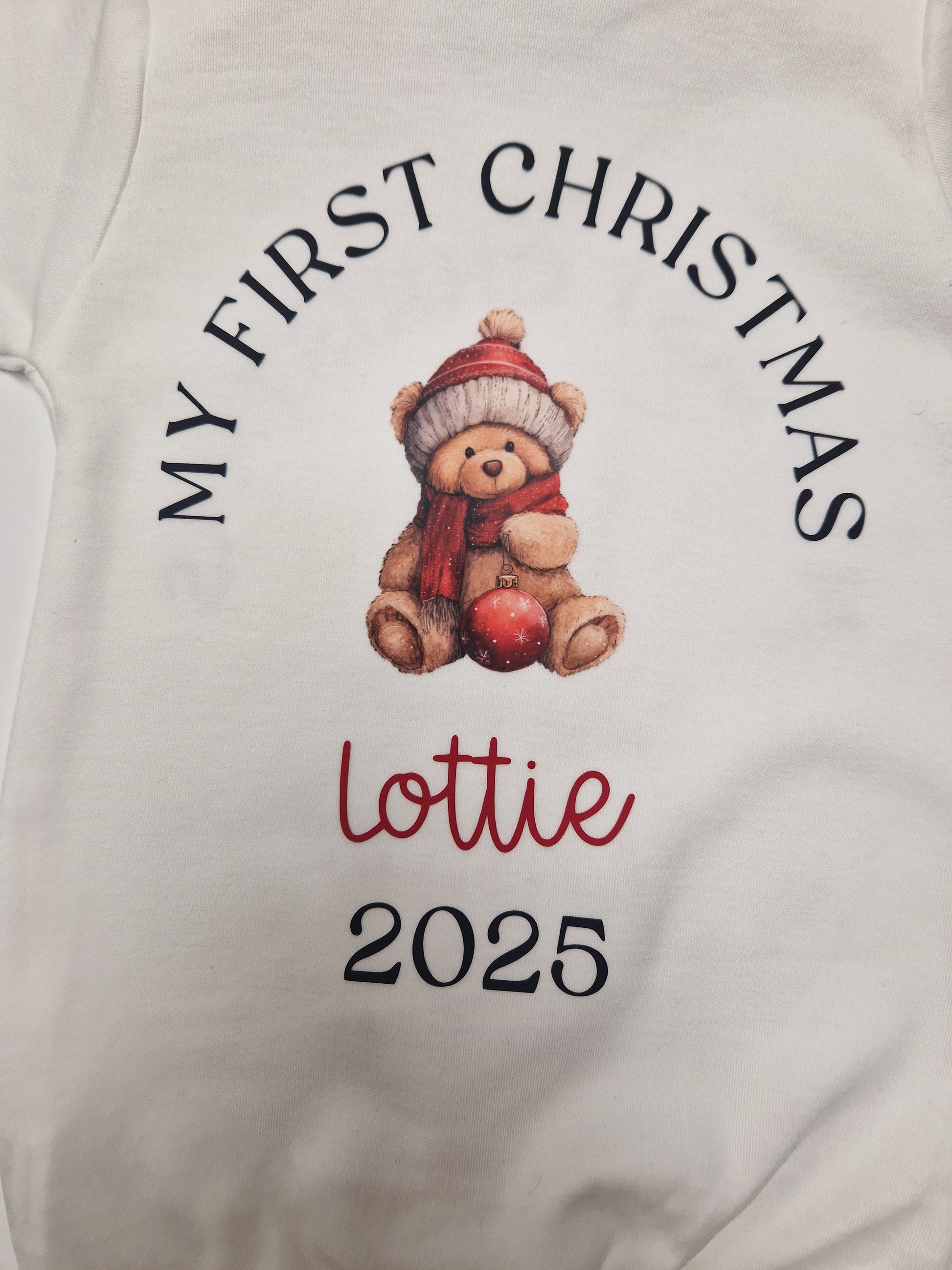 Unisex Baby 1st Christmas Personalised Teddy Printed Babygro