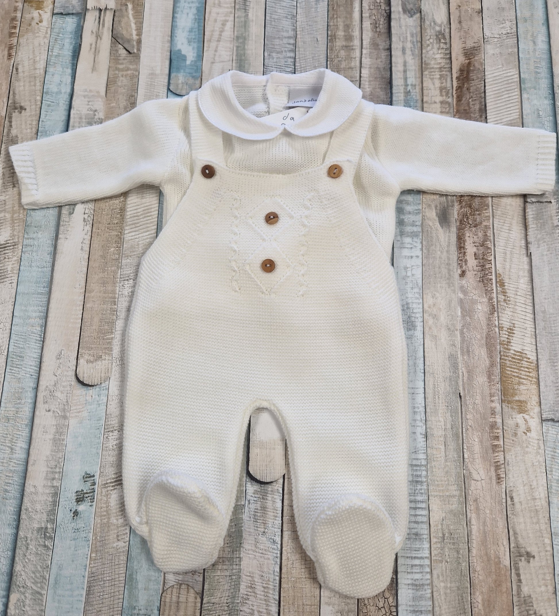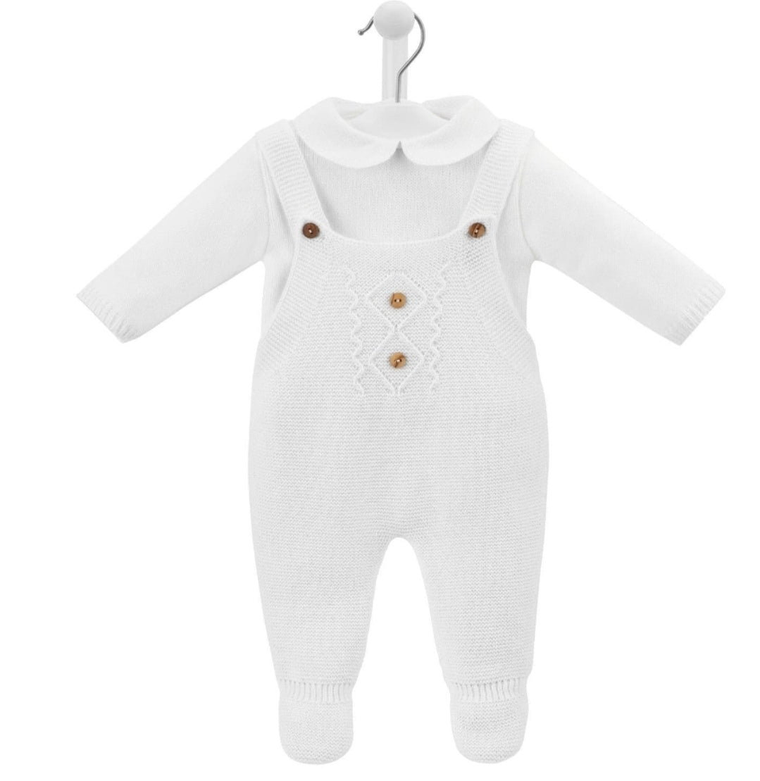 Unisex Baby White Dandelion Knitted Dungaree Set is perfect for little ones.